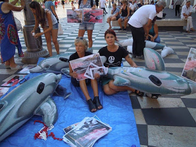 C’est le samedi 3 septembre qu’a eu lieu le Japan Dolphins Day de Nice. Notre coordinatrice Emma a pu compter sur le soutien de plusieurs militants pour réaliser un happening destiné à interpeller les passants, encore nombreux malgré la rentrée des classes. Beaucoup de gens se sont montrés sensibles au message, qui concernait également les massacres qui se déroulent aux Îles Féroé.