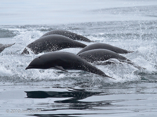 Les dauphins du Nord vivent au sein de grands groupes et sont rarement observés seuls. Copyright: Jim Scarff.