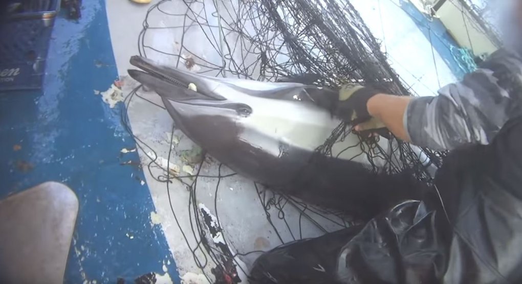 Ces filets, de véritables rideaux de nylon géants pouvant s’étendre sur un kilomètre de long et 30 mètres de hauteur, sont principalement utilisés par les pêcheurs entre San Diego et Big Sur. Bien qu’ils soient destinés à capturer l’espadon, le requin-renard et l’opah, des études et enquêtes sous couverture de Mercy For Animals ont montré qu’ils piégeaient des dizaines d’autres espèces marines, notamment des baleines, des dauphins, des otaries et des tortues de mer, des poissons et des requins. Ces animaux, appelés prises accessoires, sont souvent rejetés à la mer, blessés ou morts