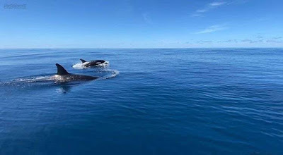 Pendant près de trois-quarts d’heure, les deux amis vont partager le large avec les quatre cétacés. « C’était étonnant parce que l’une des femelles poussait les petits vers le bateau alors que chez les dauphins ils sont plutôt dans la protection et les éloignent. Ils ont aussi fait des sauts et des claquements de queue pour montrer qu’ils étaient bien là !