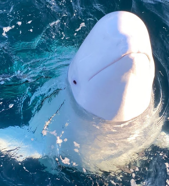 Il n’a pas fallu longtemps à Hvaldimir pour devenir une vedette sur Internet. Au tout début, sa présence en Norvège ressemblait à une jolie histoire d’un béluga qui nage de fjord en fjord, recherchant la compagnie des humains comme si il était en mission pour transmettre un beau message sur les relations inter-espèces.