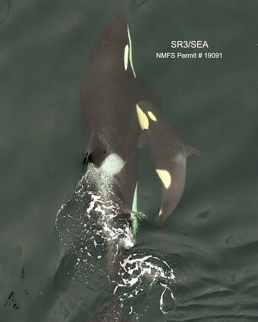 Photo aérienne de Tahlequah (J35) et Phoenix (J 57) né le 4 septembre 2020 |